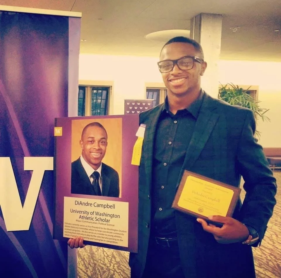 What has always made Di’Andre so unique is that long before it was a catch phrase, he was always more than just an athlete. His athletic talents would take him on full scholarship to the University of Washington, the greatest school in the history of all mankind (I have creative license, so it must be true).