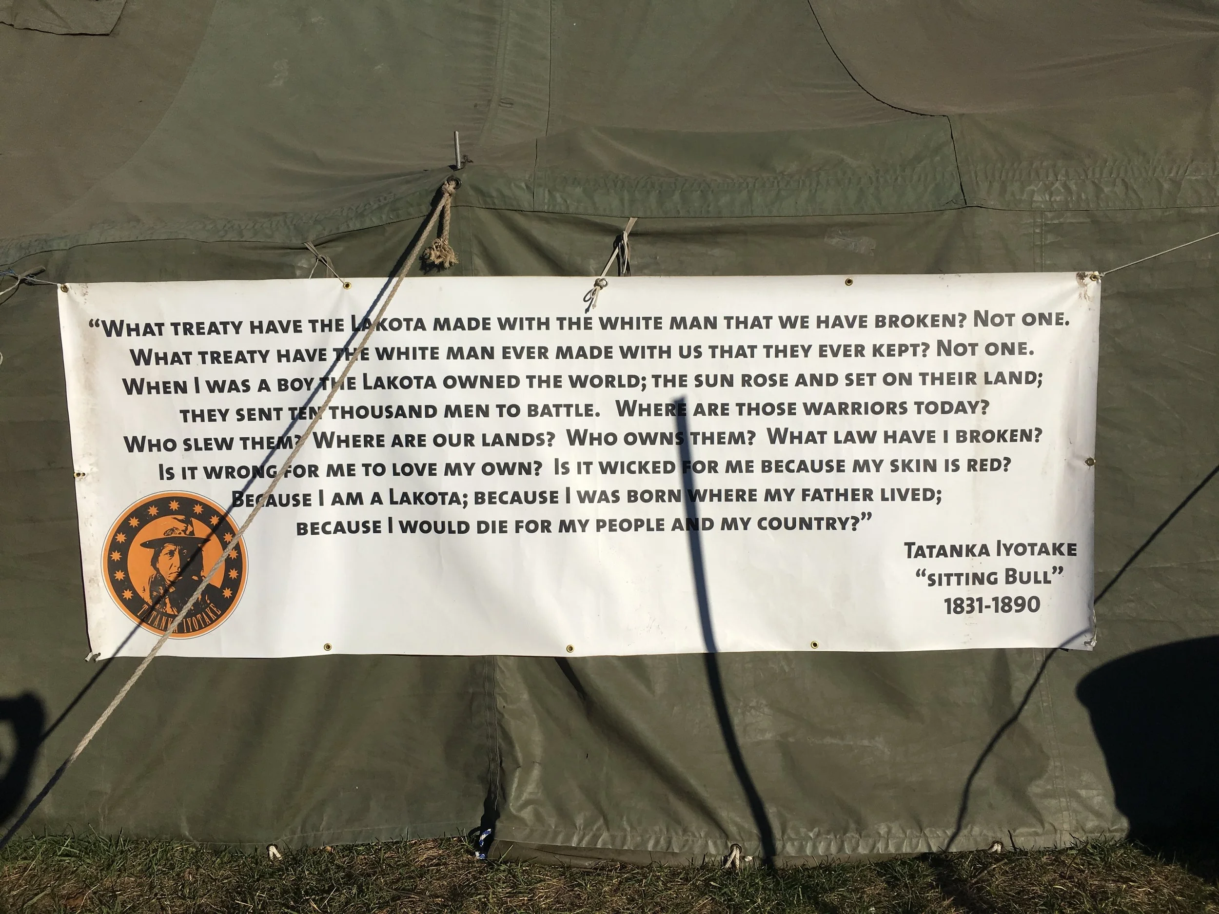 A sign hung on the side of a tent at Rosebud Camp on the Standing Rock Sioux Reservation in November 2016.